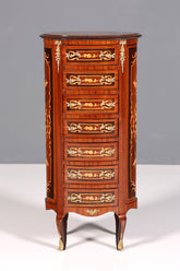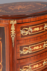 Beautiful oval Baroque style chest of drawers, vertico with inlaid details, 7 drawers