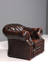 This authentic Chesterfield Centurion armchair embodies British craftsmanship in its most classic form. With its signature button tufting, elegant brass studs, and curved armrests, this gentleman's armchair is a timeless statement piece for sophisticated interiors. Its robust construction and high-quality leather upholstery promise decades of comfortable use. An investment in authentic vintage quality that will enrich any room with character and elegance.