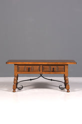 This authentic Spanish coffee table impresses with its handcrafted solid wood construction and embodies the rustic charm of Iberian furniture making. The natural grain and warm wood tones create a timeless elegance that blends harmoniously into both classic and modern living spaces. With its robust construction and distinctive design, this side table becomes a focal point – a piece of history that brings warmth and authenticity to your home.