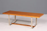 This elegant mid-century coffee table, crafted from solid teak, embodies timeless design classicism. With its warm wood grain and characteristic proportions of the 1950s and 60s, it becomes a focal point in any living room. The robust construction and the natural patina of the teak tell the story of an authentic vintage piece. Perfect as a central side table or to complement a curated furniture collection – an investment in timeless quality and style.