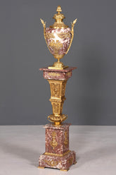 Stilvolle Marmor-Säule mit Vase im Louis XV / Barock-Stil: Klassische Eleganz in massiver Ausführung